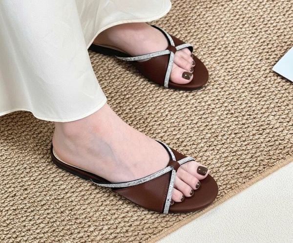 Dép xẹp mũi tròn phối 2 quai xoàn - MS: DX-250107