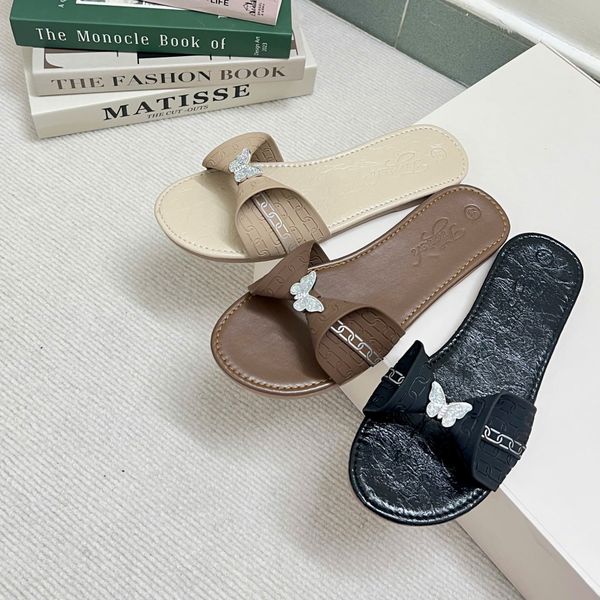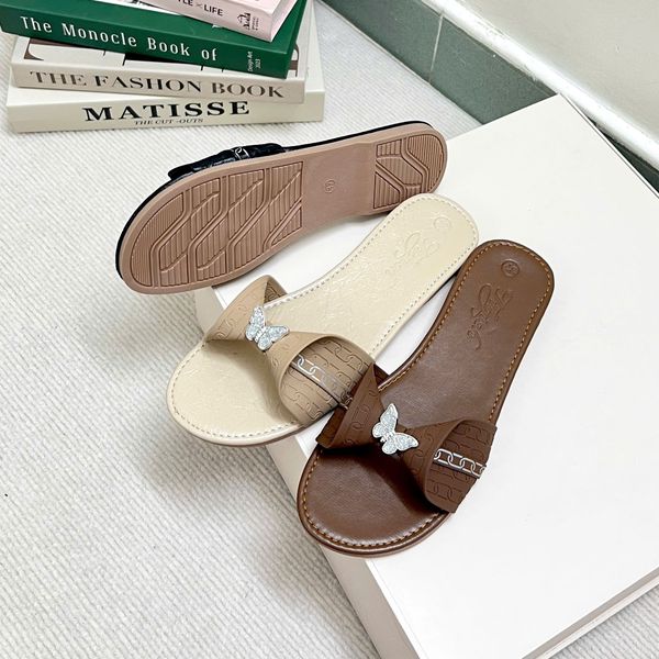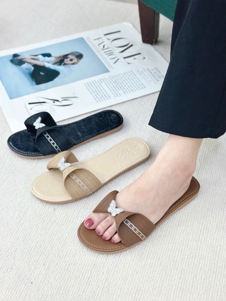 Dép xẹp mũi tròn quai cuốn nơ gắn khóa bướm - MS: DX-63076