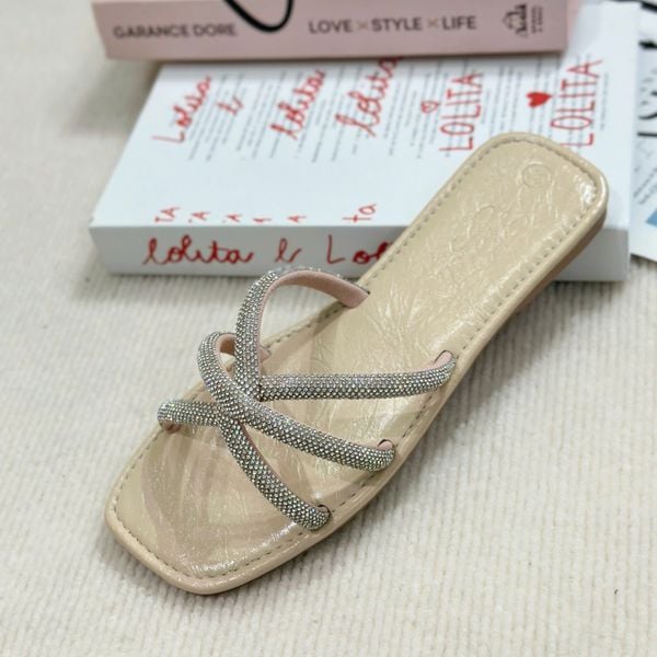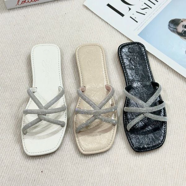 Dép xẹp mũi vuông 3 quai đan dây xoàn - MS: DX-63078