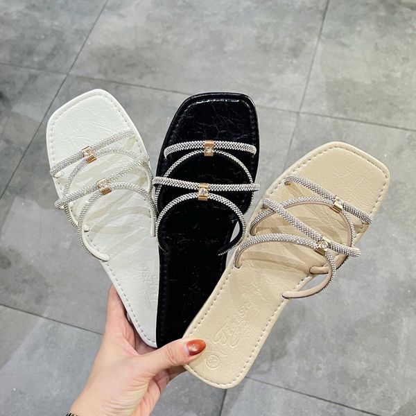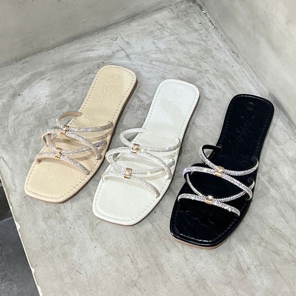 Dép xẹp mũi vuông 4 quai đá mảnh phối khóa - MS: DX-63072