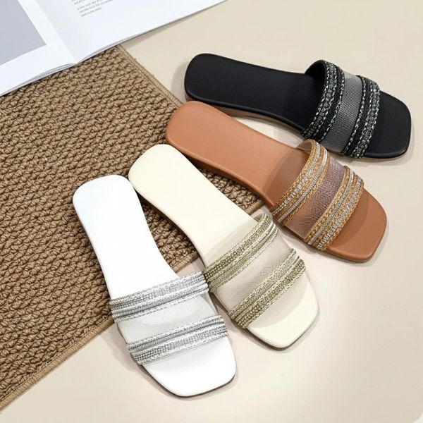 Dép xẹp mũi vuông quai ngang lưới - MS: DX-63080