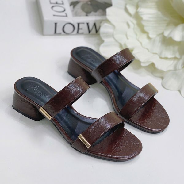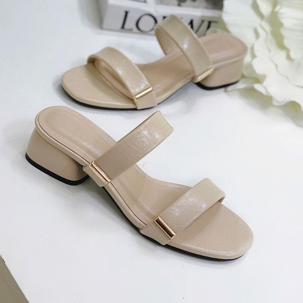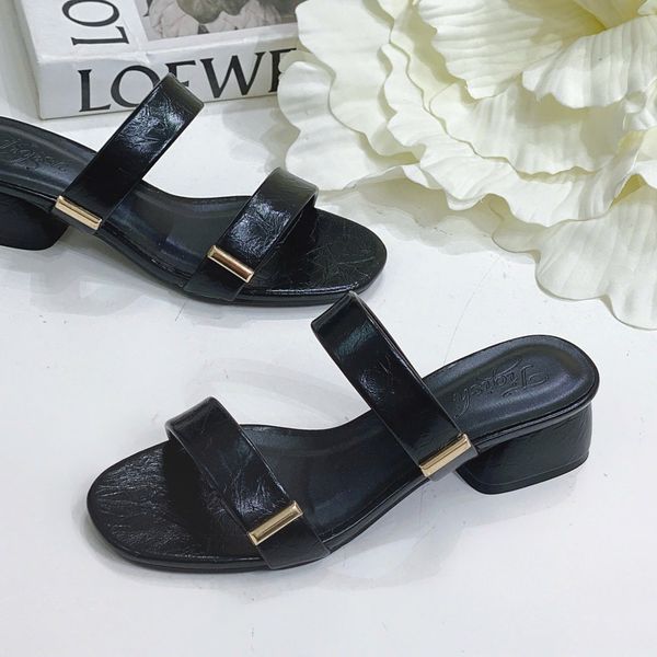 Guốc 4cm gót trụ mũi tròn 2 quai ngang gắn khóa - MS: G4-23002
