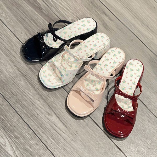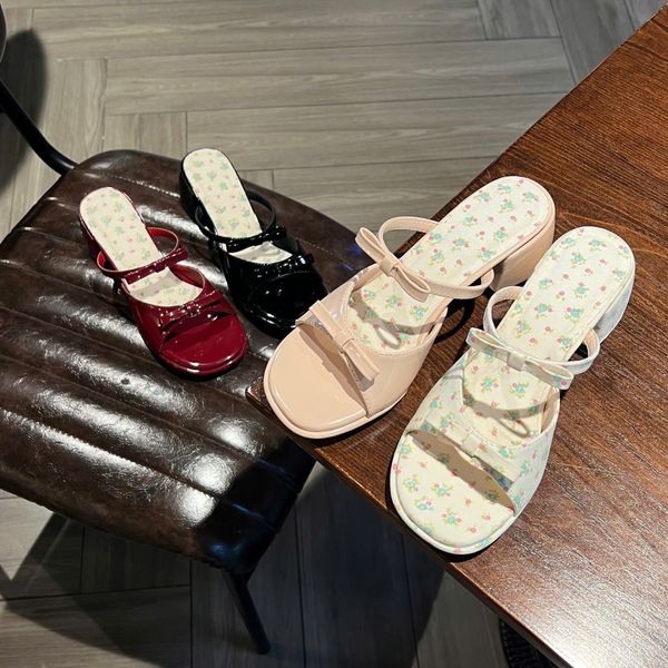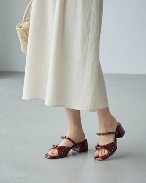 Guốc 5cm gót trụ mũi tròn 2 quai gắn nơ - MS: G5-71003