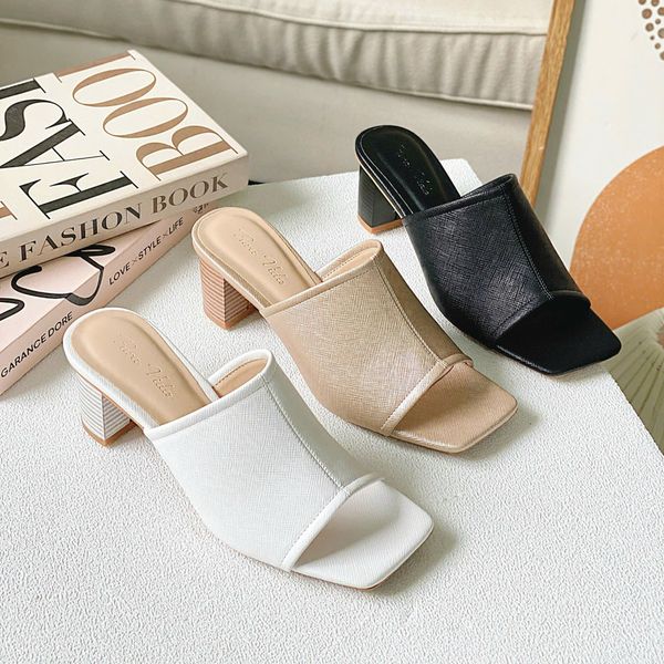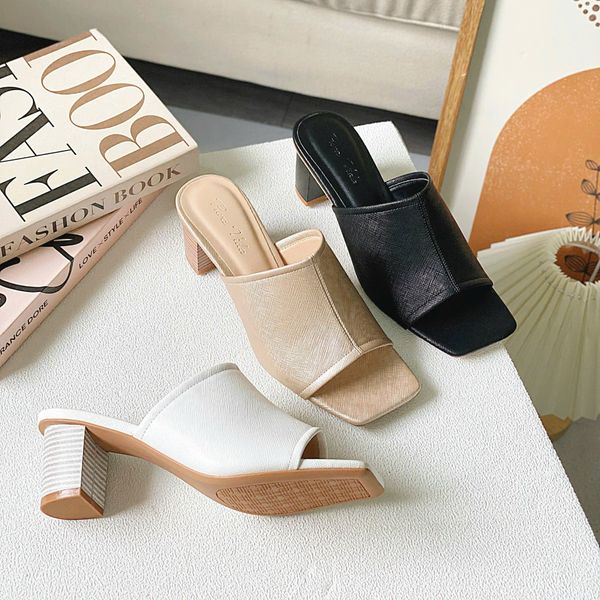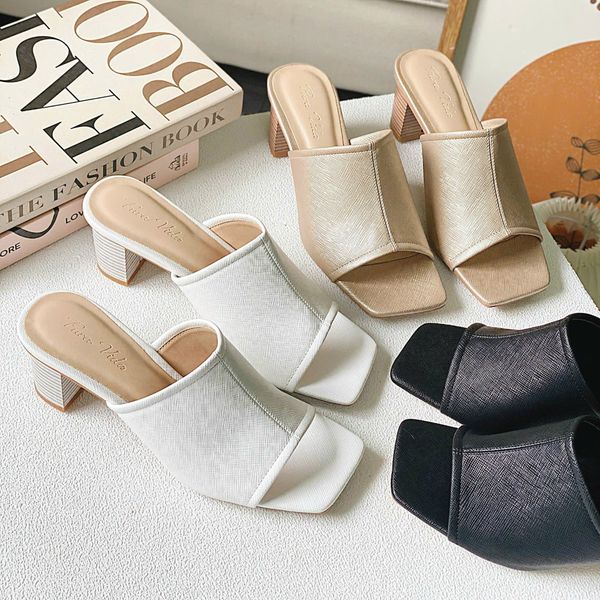 Guốc 5p gót trụ mũi vuông bảng ngang lớn may chỉ giữa- MS: G5-85002