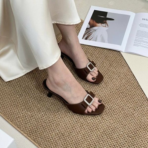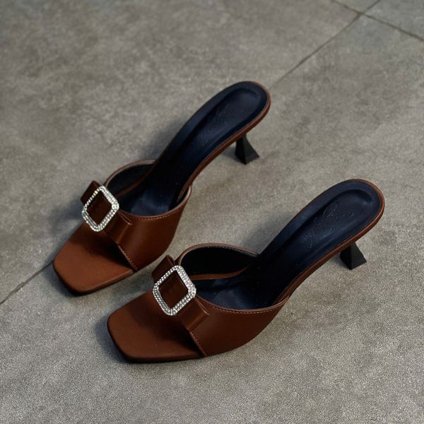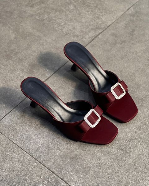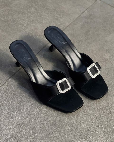 Guốc 7cm gót vuông mũi vuông quai ngang khuyết giữa phối nơ khóa - MS: G7-23021
