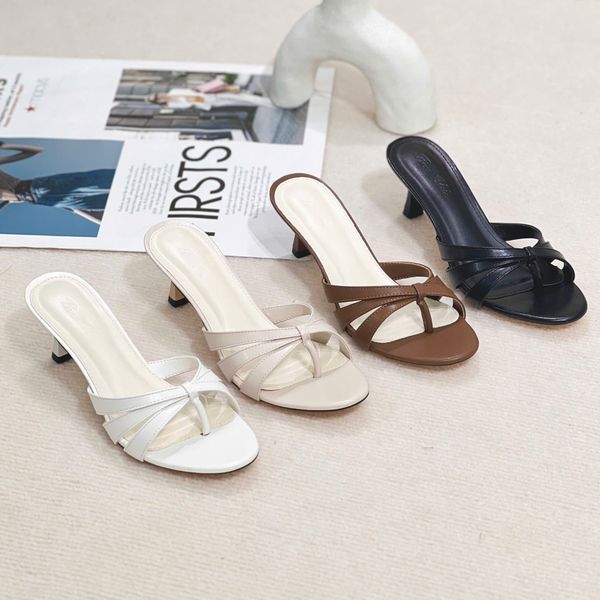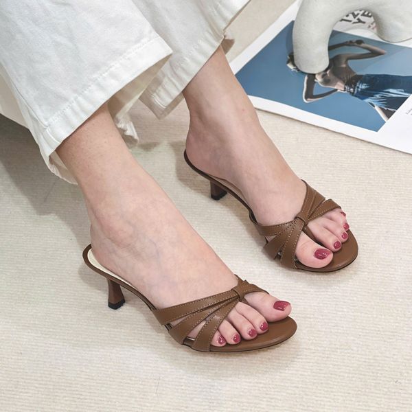 Guốc 7cm gót vuông nhỏ mũi tròn kẹp ngón 3 quai chéo - MS: G7-10008