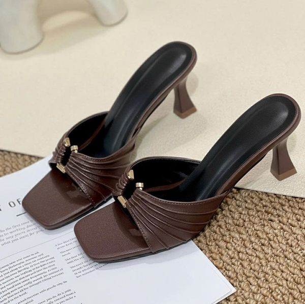 Guốc 7cm gót vuông nhỏ mũi vuông quai ngang xếp ly luồn khóa - MS: G7-23020