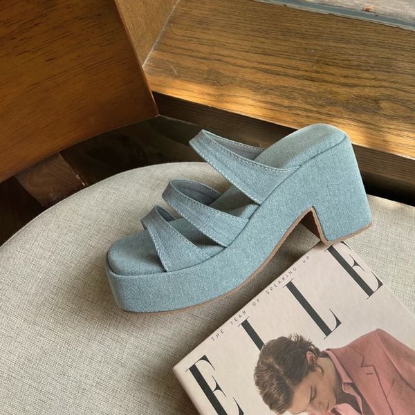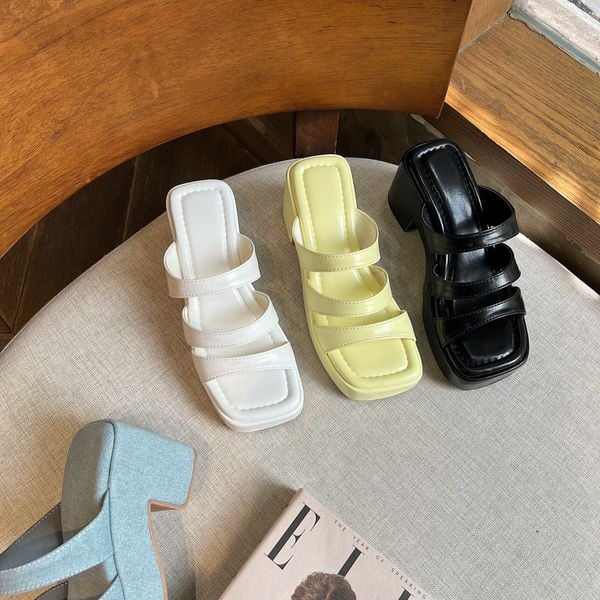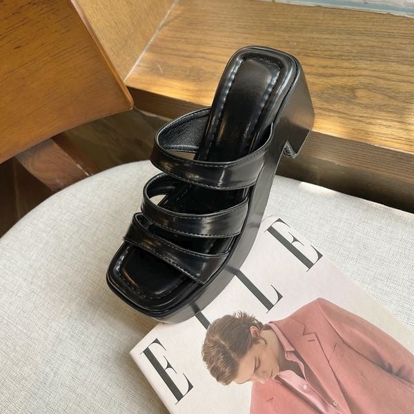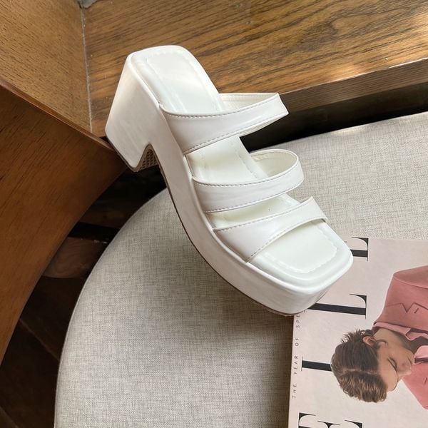Guốc 8cm bánh mì mũi vuông 3 quai ngang - MS: G8-58001