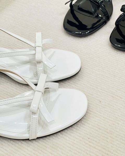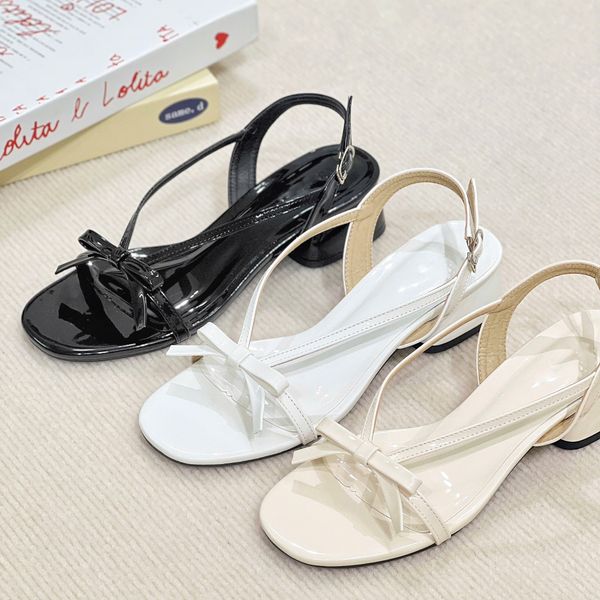 Sandal 3cm gót trụ mũi bầu quai ngang gắn nơ nối hậu khóa - MS: S3-23002
