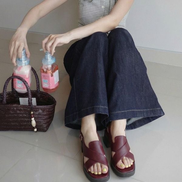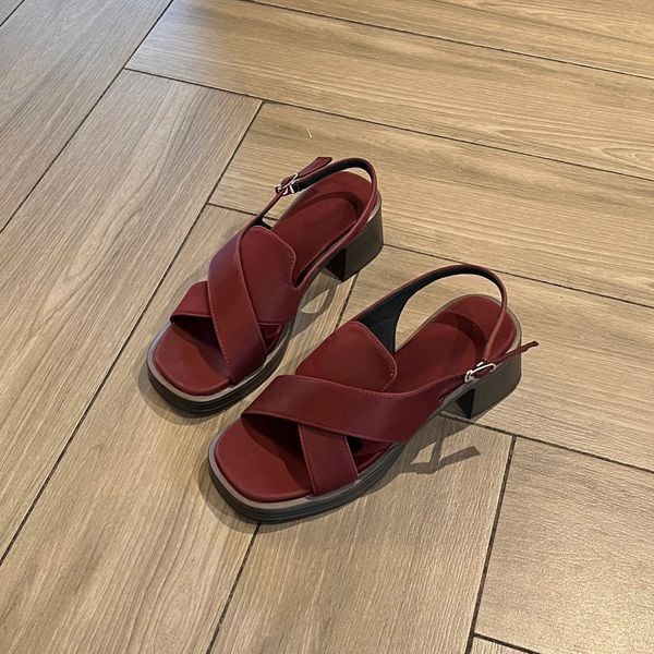 Sandal 5cm đế đúc mũi vuông 2 quai chéo lớn hậu khóa - MS: S5-10011