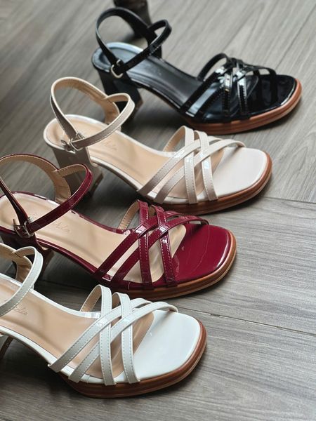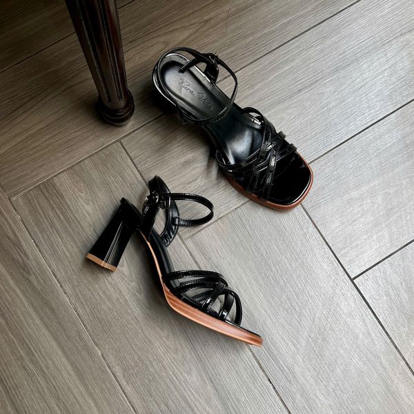 Sandal 8cm gót trụ vân gỗ mũi vuông đúp mũi 4 quai đan chéo - MS: S8-85002
