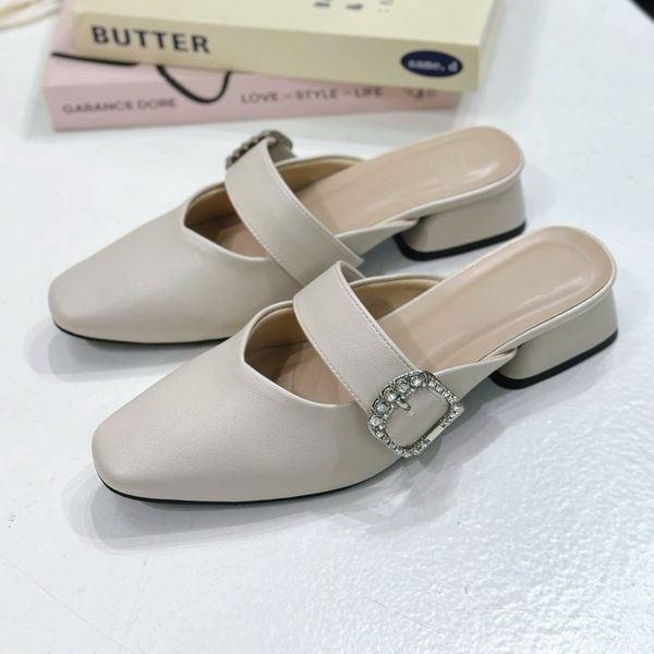 Sục 4cm gót trụ mũi vuông nhỏ phối quai ngang khóa - MS: C4-64001