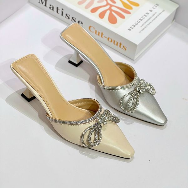 Sục 7cm gót vuông nhỏ mũi nhọn đính nơ đá - MS: C7-22006